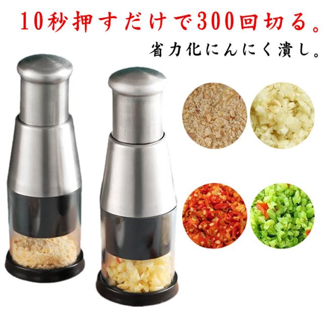 チョッパー ステンレス鋼 にんにくカッター みじん切り器 手動フードチョッパー にんにく 押すだけ 簡単操作 にんにく みじん切り器 電源不要 水洗いOK 唐辛子 ねぎ たまねぎ フードプロセッサー 手動 みじん切り器