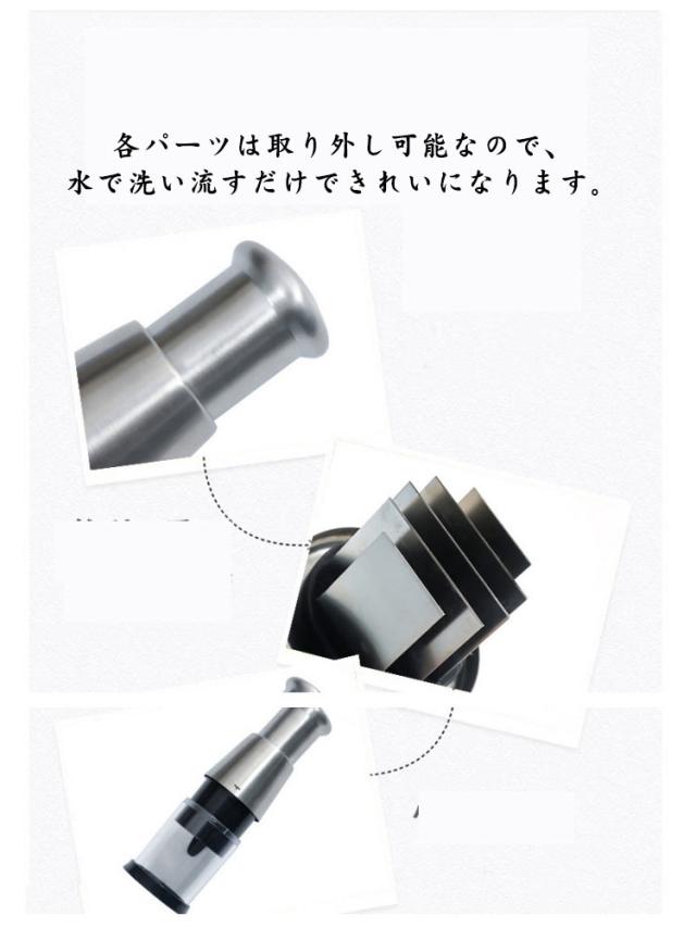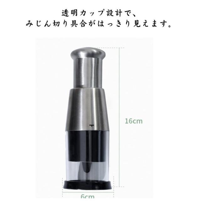 | 10秒押すだけで300回切る。 省力化にんにく潰し。 スプリング内蔵、自動跳ね返り、ラクラクみじん切り。 透明カップ設計で、みじん切り具合がはっきり見えます。 各パーツは取り外し可能なので、水で洗い流すだけできれいになります。 レタス、ニンジン、ピーマン、玉ねぎ、ジャガイモなど、さまざまな食材に適しています。 ステンレス鋼の刃を採用しており、丈夫で耐久性があり、効率的に食材を切ることができます。 カップの内側は食品グレードのプラスチックで作られており、食品の安全性、堅牢性、バクテリアの防止を保証します。 | |