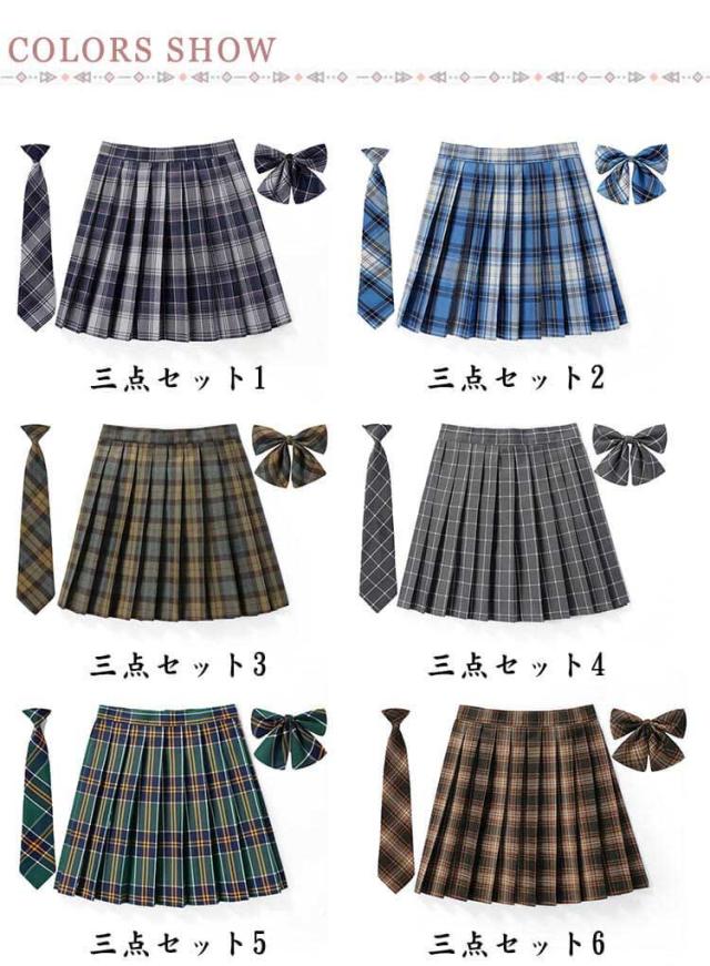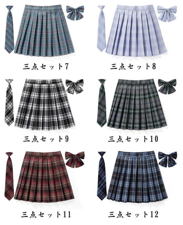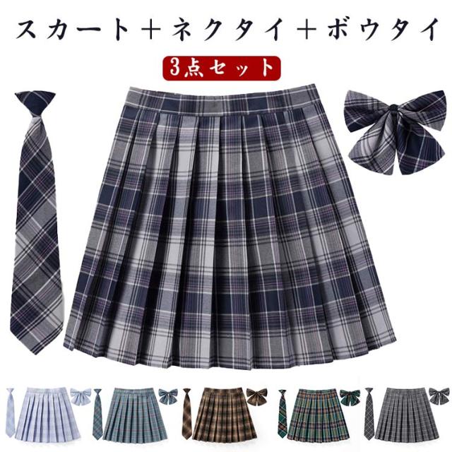 プリーツスカート スカート 学生服 学生制服 セット ネクタイ ボウタイ チェック柄スカート 制服 女子高生 JK JK制服 コスプレ 3点セット 大きいサイズ 小さいサイズ 高校生 中学生 セーラー服 コスチューム 入学式 卒業式 お受験 発表会