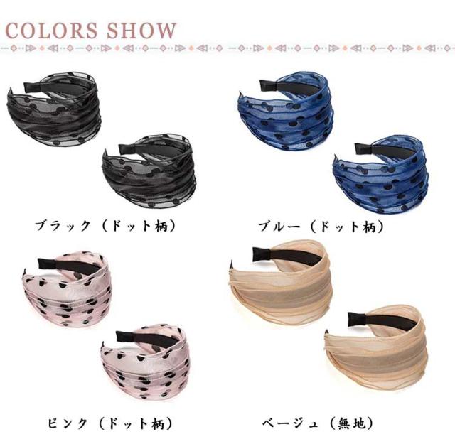 ワイドカチューシャ 幅広 白髪隠し 可愛い ターバン 選べる2個セット 薄毛隠し ヘアバンド 40代 痛くない フリル レースカチューシャ ドット柄 カチューシャ 30代 無地 50代 60代