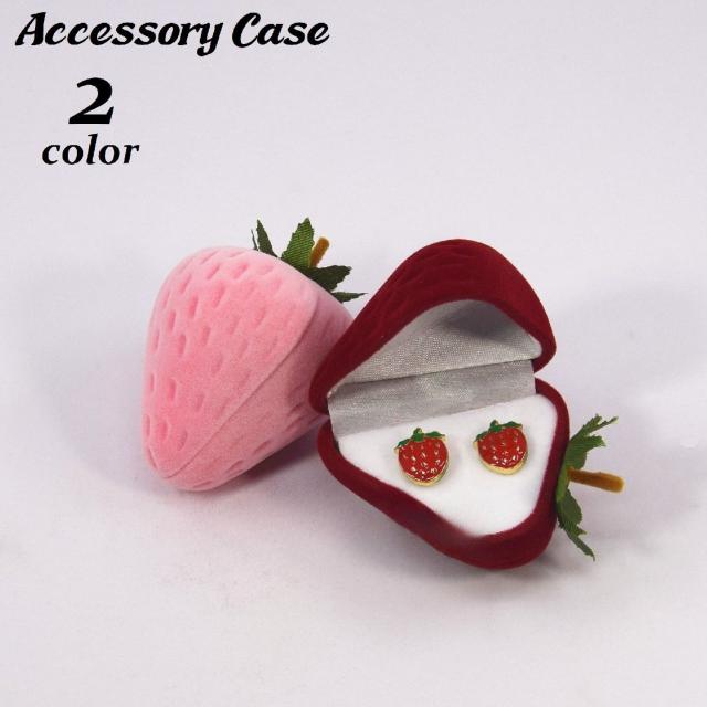 アクセサリーケース リングケース 指輪ケース ピアス 収納 ジュエリーボックス イチゴ 苺 ストロベリー ベロア調 ギフト プレ