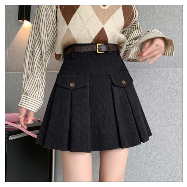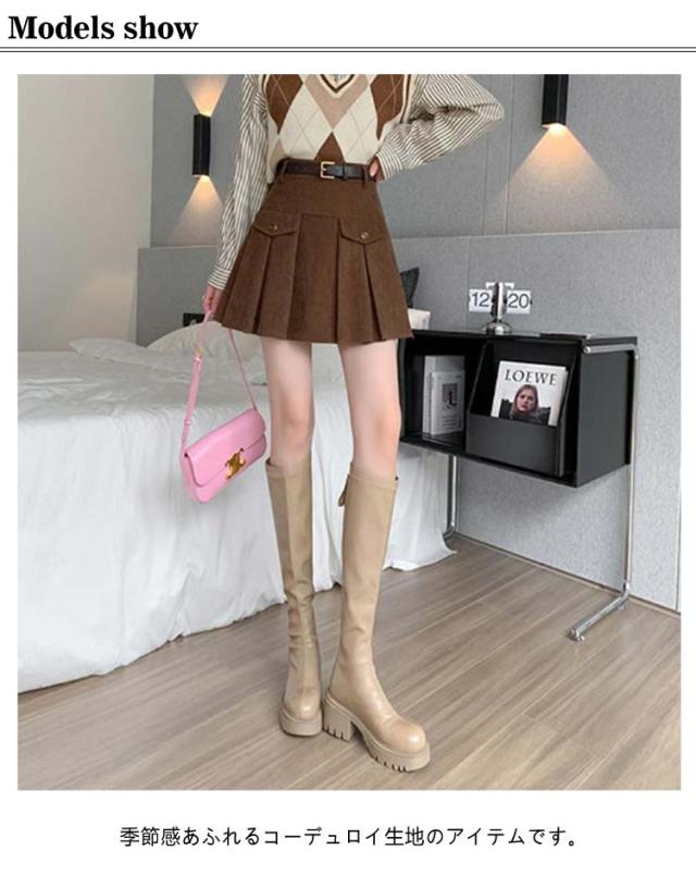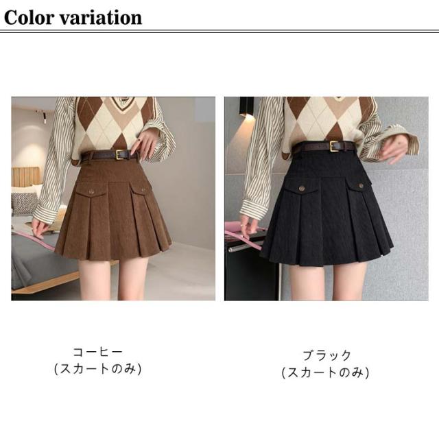 ひざ上 秋冬 レディース コーデュロイ スカート プリーツ ハイウエスト ショート インナーパンツ付き レディーススカート 春秋スカート プリーツスカート ミニスカ Aラインスカート きれいめ 大人スカート ミニスカート