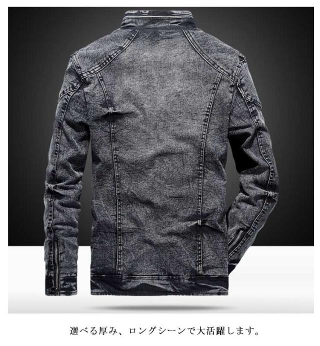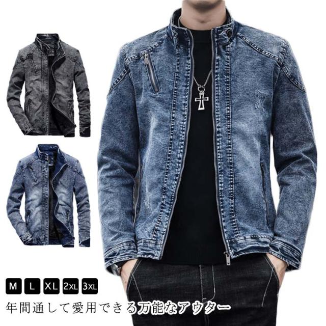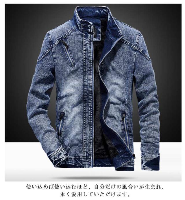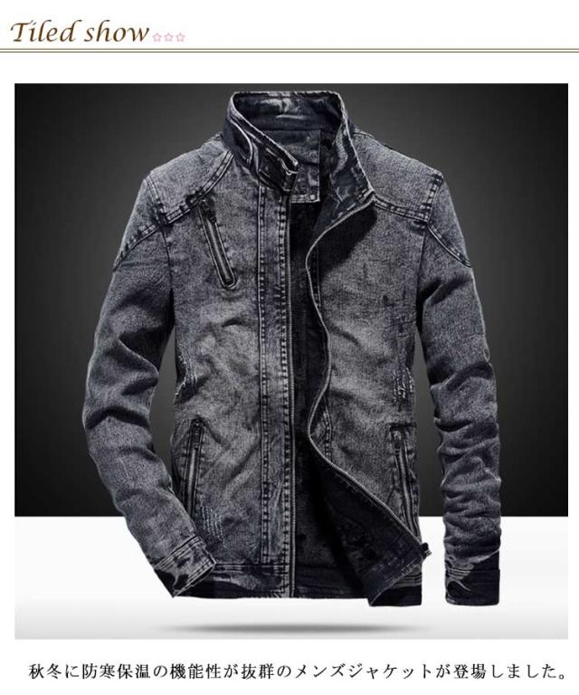 ジャケット かっこいい メンズ バイクジャケット スタンド襟 厚手 カジュアル デニム アウター デニム ヴィンテージ加工 秋冬用 スリム 大人男性 カジュアル デート 防寒防風 ジャケット オシャレ カジュアル ビジネス 通勤 裏起毛 無地 ギフト