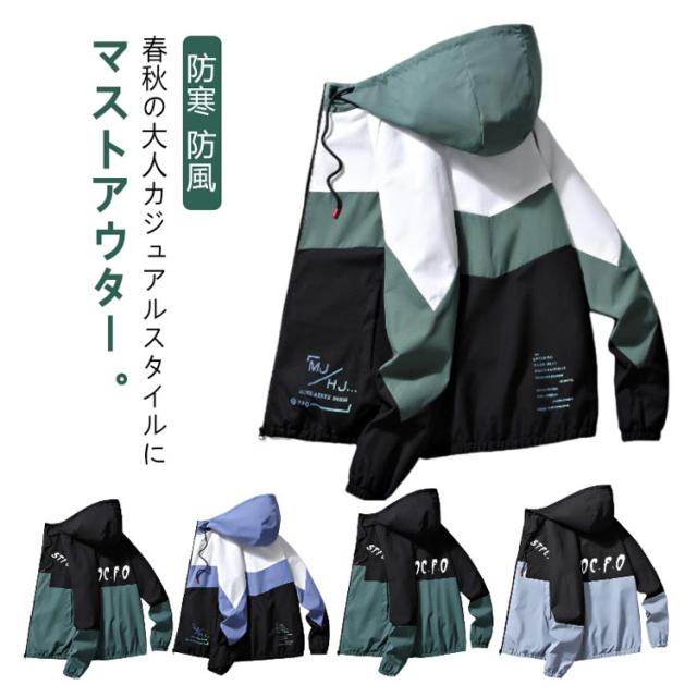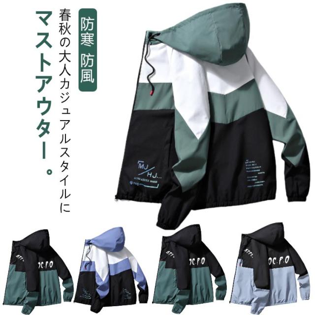 カジュアルジャケット コート アウター フード付き ウィンドブレーカー マウンテンパーカー カジュアルジャケット ジャンパー コート ライトアウター メンズ カジュアル 防寒 無地 大きサイズ 防風 春 秋 アウトドア 無地 アウトドアウェア 登山ウェア