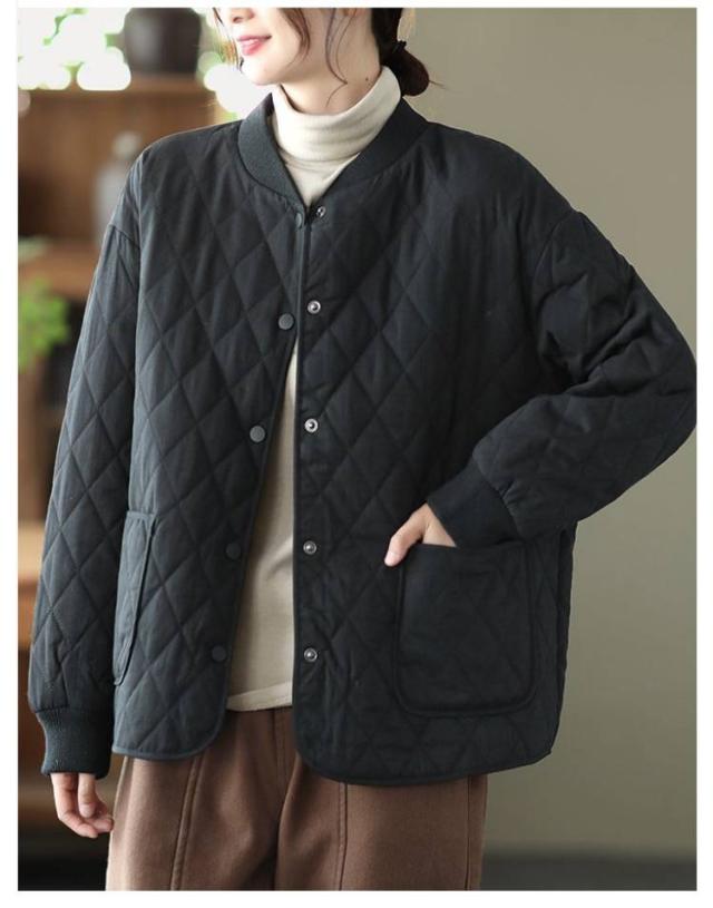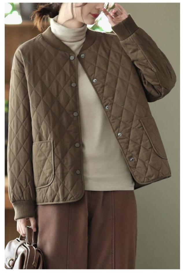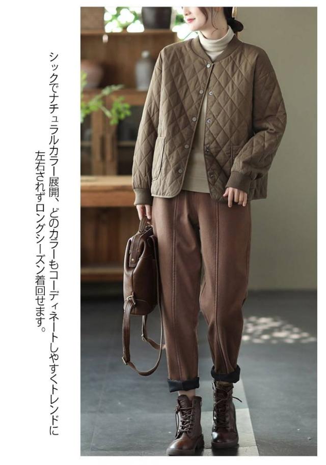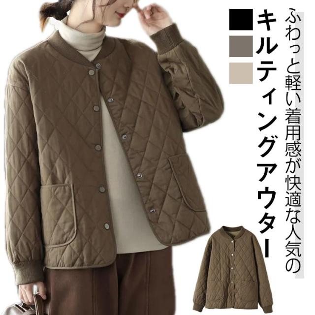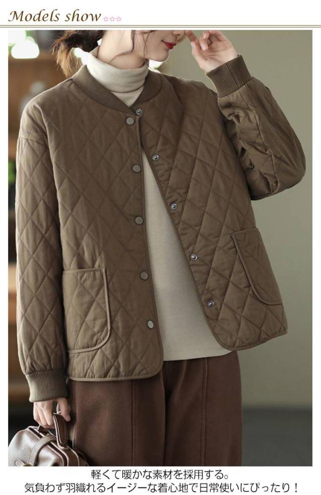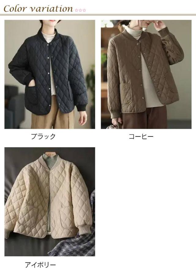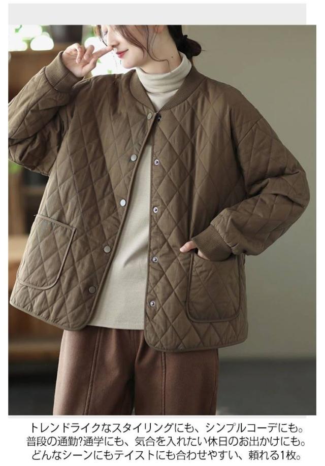 キルティング あったか ノーカラー ジャケット おしゃれ 中綿ジャケット 羽織り 中綿コート シンプル 春 秋冬 レディース 体型カバー アウター 大人 女性 ミドル丈 大きいサイズ 無地 カジュアル キルティング 防寒 通勤 通学 ギフト