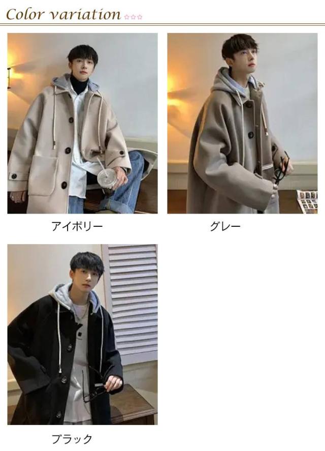 コート 冬 アウター コート 無地 チェスターコート カジュアル ロングコート メンズ ロング 韓国 大人男性 フード付き コート フェイクレイヤード 暖かい コート アウター チェスターコート ロング 秋冬 ファッション 通勤 通学 ギフト