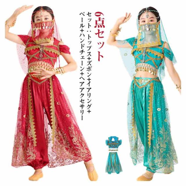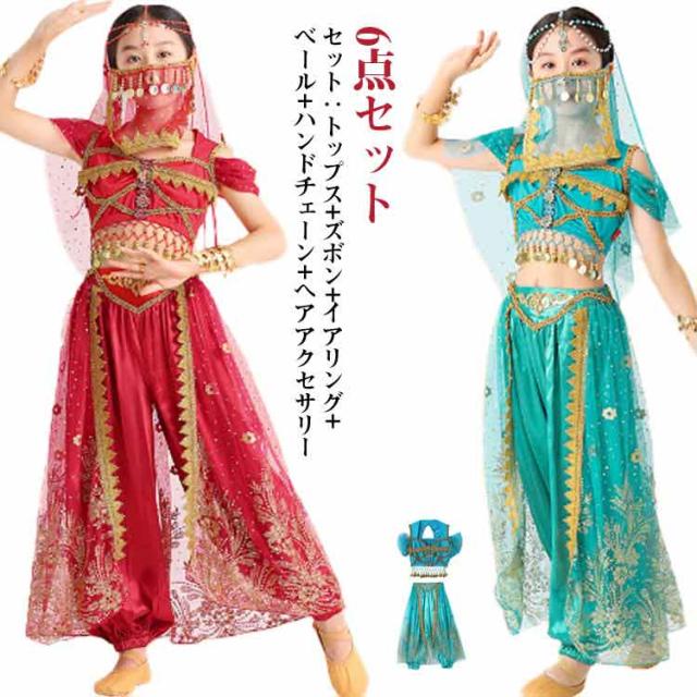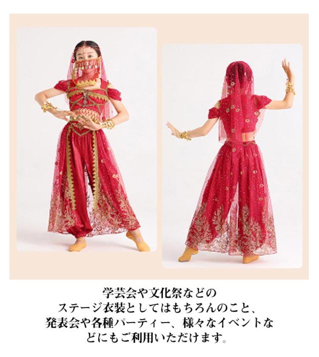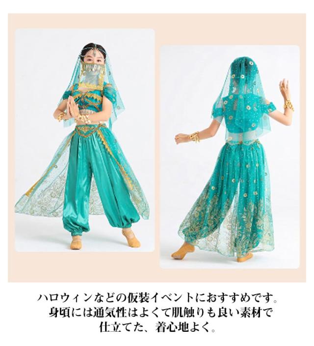 ベリー パーティー ベリーダンス 衣装 セット 衣装 子供 コスチューム 衣装 6点セット 6点セット アラビアン仮装 ハロウィン アラビアン衣装 レッスン着 ステージ衣装 ジャスミン パーティードレス コスチューム S M L
