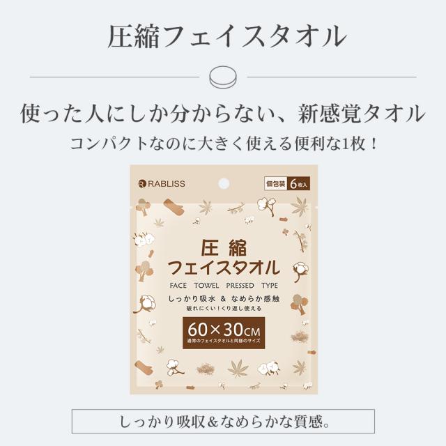 品名:圧縮フェイスタオル 6枚入(個別包装)