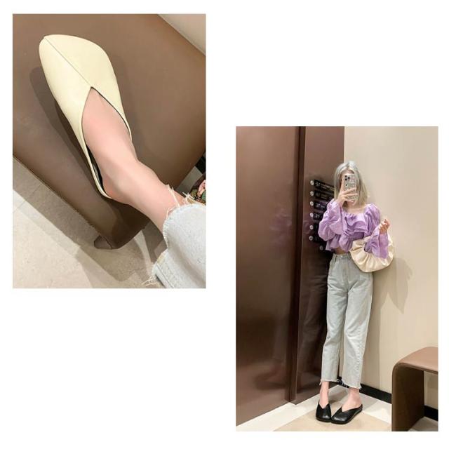 スクエアパンプス ローヒール バブーシュ フラットシューズ 春秋 レディース パンプス パンプス 夏 スクエアパンプス レディース ぺたんこ ブラック 黒 通勤 オフィス