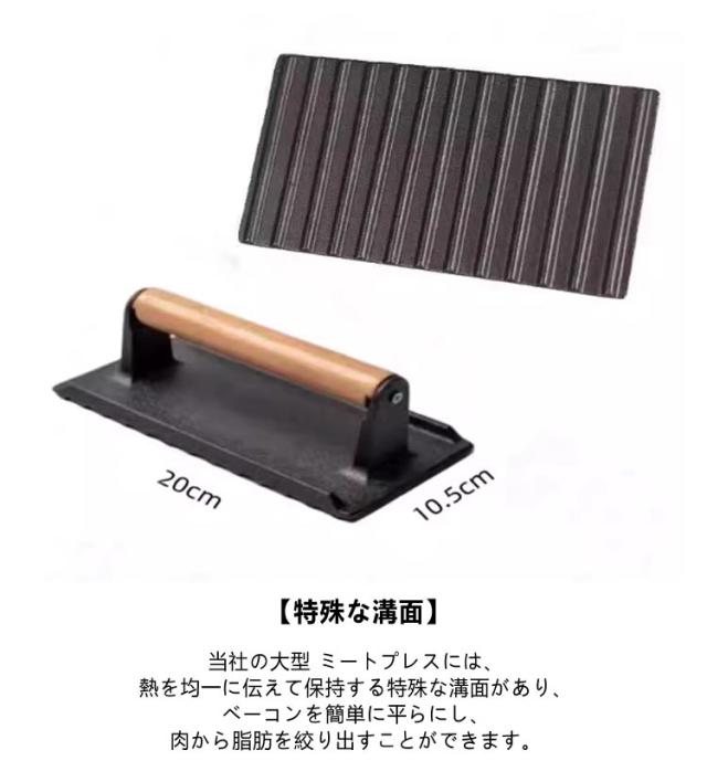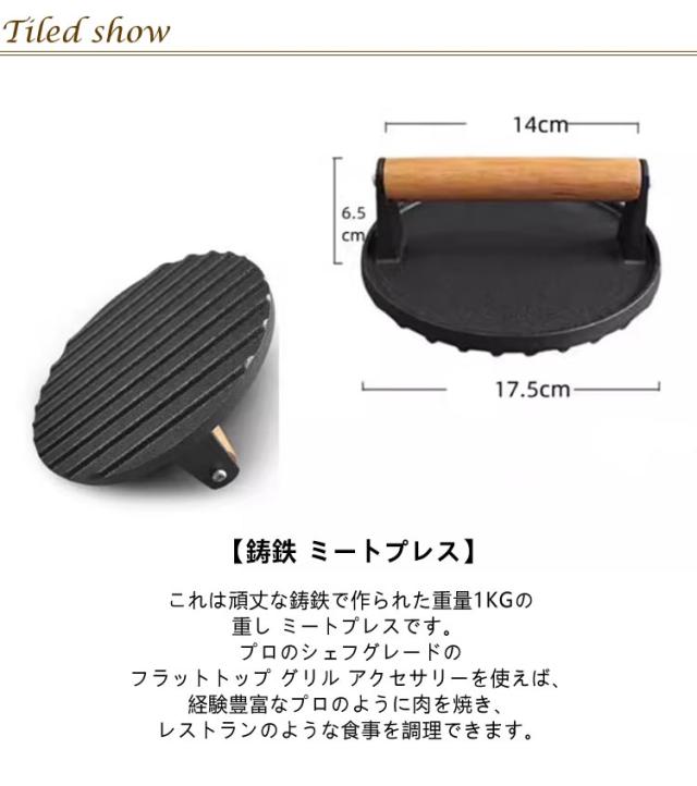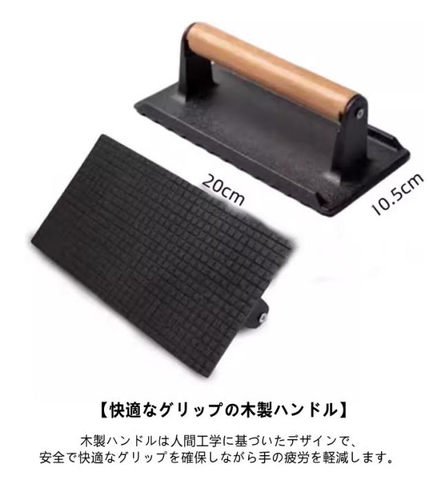 木製ハンドル 肉プレス ベーコンプレス グリルミートプレス 鋳鉄 重し 重し 錆びない 大型 プレス機 料理 鋳物 ステンレス ハンバーガープレス 食肉プレス ハンドプレス 波型 海鮮 ホットサンド ステーキ 縮み 焼きムラ