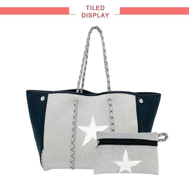 | ・ネオプレントートバッグ ・ダイビングスーツに使われるネオプレーン素材を使用し、軽量で丈夫な作りに。 ・大きめのサイズ感であらゆる場面に重宝するトートバッグ。 ・長めのハンドルで、肩掛けも可能。 ・しっかりとマチが広く大容量なので、旅行バッグやマザーズバッグとしてもオススメ。 | |
