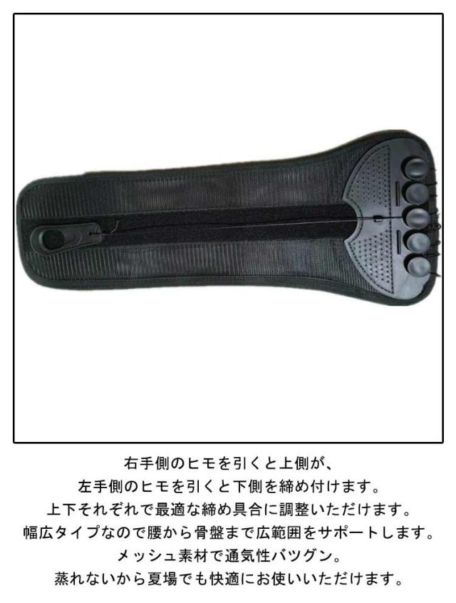 | 軽い力でぎゅっとしっかり固定!腰にも骨盤にも使える矯正ベルト。 軽い力で引っ張るだけ!滑車滑車の原理で軽い力でもしっかり引き締め固定します。通常のコルセットでは力が入らず難しかった固定が簡単にできるのでズレることなく安定!サイズが合わず悩んでいた方にもオススメです。 着脱カンタン!着脱の難しいホックはなし!強力なマジックテープ仕様なので、簡単にしっかりと固定できます。 いつでも気軽に着用!腰痛が気になる方、腰に負担がある作業をする方、産後の骨盤ケアに、家事や仕事をしながら体型改善! 右手側のヒモを引くと上側が、左手側のヒモを引くと下側を締め付けます。上下それぞれで最適な締め具合に調整いただけます。 幅広タイプなので腰から骨盤まで広範囲をサポートします。 メッシュ素材で通気性バツグン。蒸れないから夏場でも快適にお使いいただけます。 | |