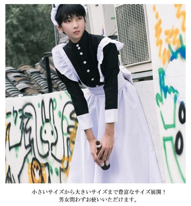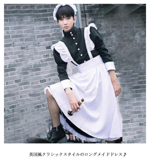 | セット内容:ワンピース+エプロン+髪飾り+リボン 英国風クラシックスタイルのロングメイドドレス♪ 定番の白黒デザインが一番可愛い♪ 小さいサイズから大きいサイズまで豊富なサイズ展開!男女問わずお使いいただけます。 ハロウィーン、パーティー、演劇、イベント、学園祭などいろんなシチュエーションに合う。 | |