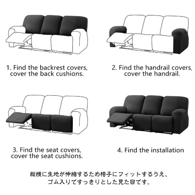 マッサージチェア 1人掛け 肘付き リクライニングソファー カバー ソファーカバー リクライニングチェアカバー 椅子カバー 1人掛け 4点セット ストレッチ 伸縮 無地 フィット 電動ソファ マッサージソファ用 着せ替えカバー マッサージチェア 肘あり 一人掛け 汚れ防止