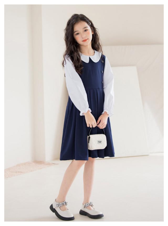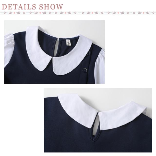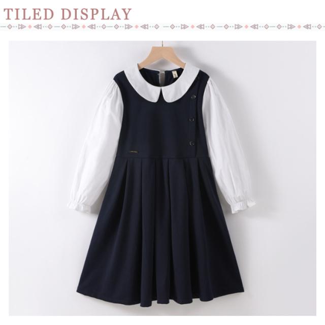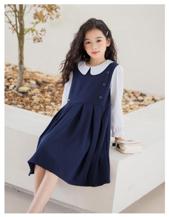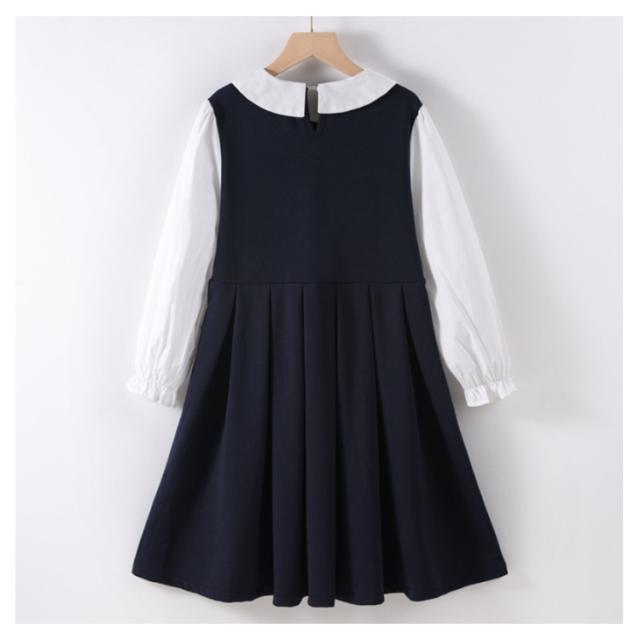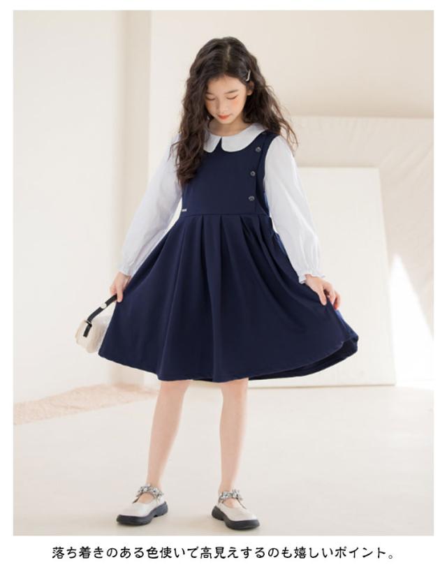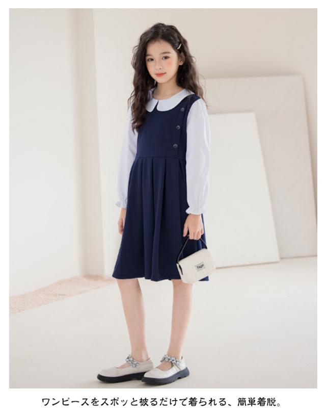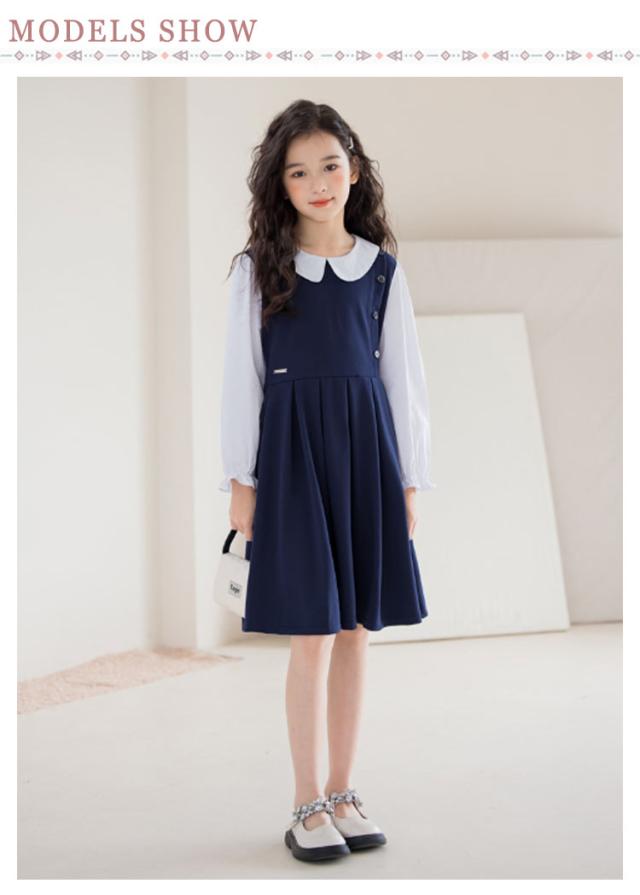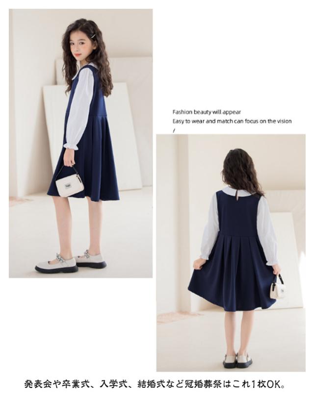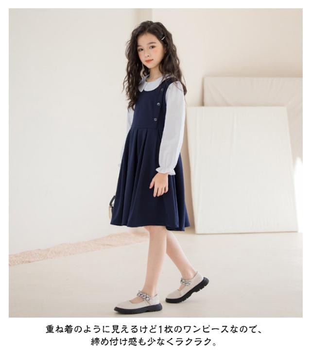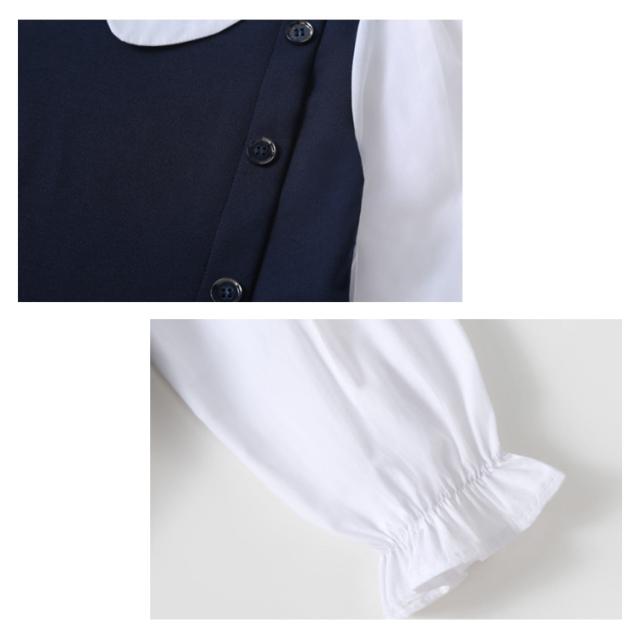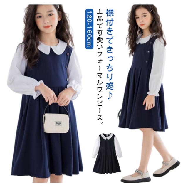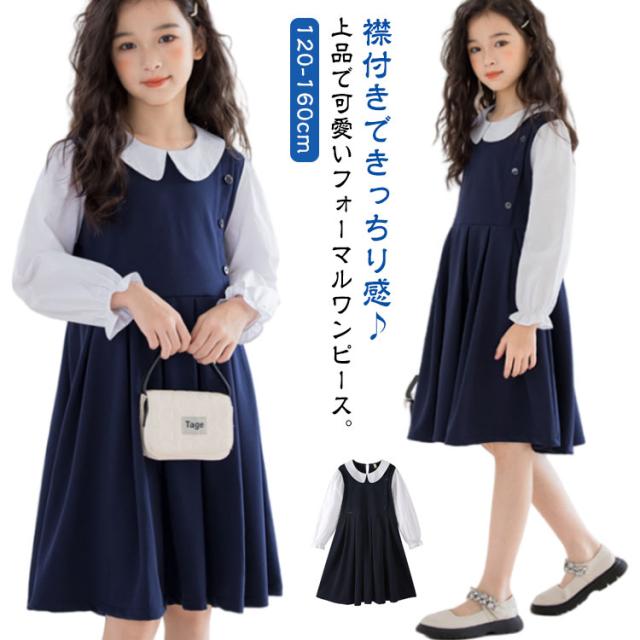 120 お受験 卒業式 ワンピース スーツ 130 150 ジュニア 160 入学式 女の子 韓国 制服 小学生 子供 白襟 入学式 ピアノ発表会 結婚式 フォーマルスーツ 七五三 140 春 夏 秋 丸襟 長袖 ワンピース ドレス
