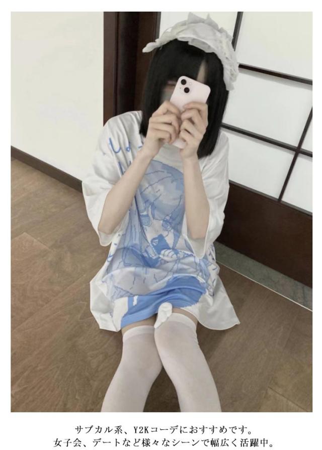 | フロントのプリントが可愛い。水色好きの方におすすめです。 シルエットがゆったりめで、気になる体型をカバーして、着痩せ効果が抜群です。チュニック丈なので、お尻まで隠れる。 様々なボトムスと合わせコーディネートを楽しませてくれます。 かわいい&オリジナルなデザインで、プレゼントとしても素敵です。 サブカル系、Y2Kコーデにおすすめです。女子会、デートなど様々なシーンで幅広く活躍中。お洒落で可愛いデザインで、プレゼントとしてもピッタリです。 | |