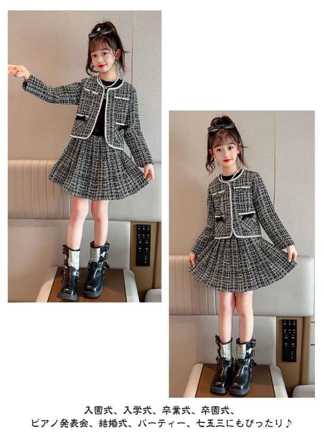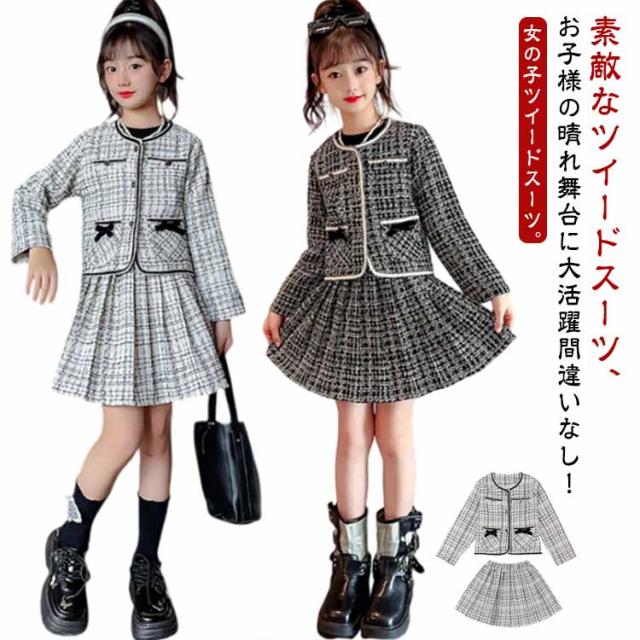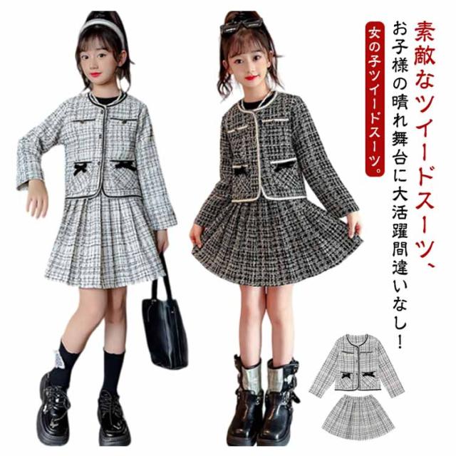 子供スーツ ツイード ジャケット セレモニー スカートスーツ 女の子 子供スーツ セットアップ フォーマルスーツ 卒園式 入園式 結婚式 発表会 入学式 卒業式 キッズ ジュニア 小学生 中学生 幼稚園