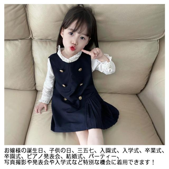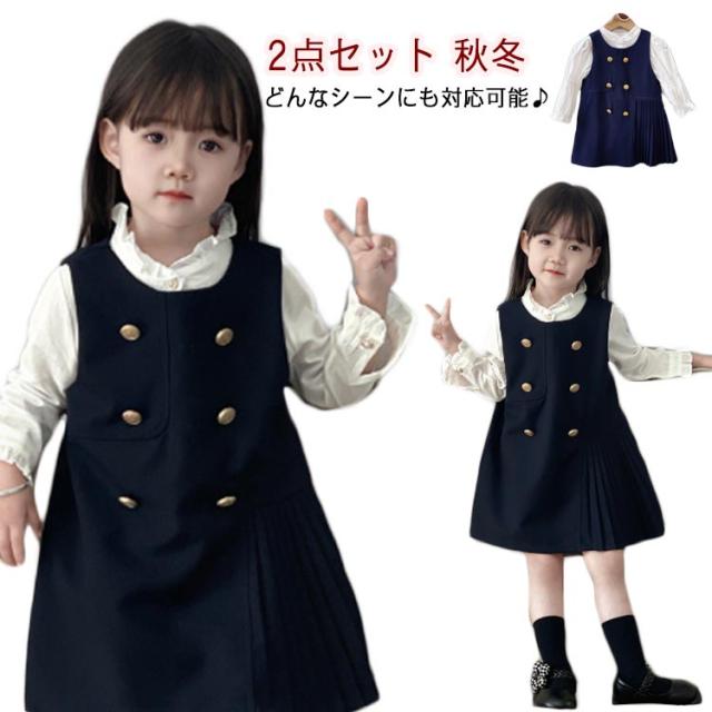 卒業式 七五三 入学式 ジャンパースカート ワンピーススーツ 入園式 卒業式 可愛い フォーマルスーツ 長袖シャツ 2点セット 冠婚葬祭 韓国 子供服 制服 結婚式 秋冬 お出かけ 小学校 幼稚園 喪服 法事 礼服 面接 受験
