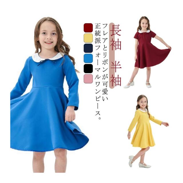 キッズ 結婚式 白襟 半袖 ワンピース スーツ こども服 ワンピース 入学式 卒業式 面接 長袖 丸襟 卒園式 襟付き フレアワンピース お受験 フォーマルワンピース セレモニー 式典 黒 紺色 通学 七五三 冠婚葬祭