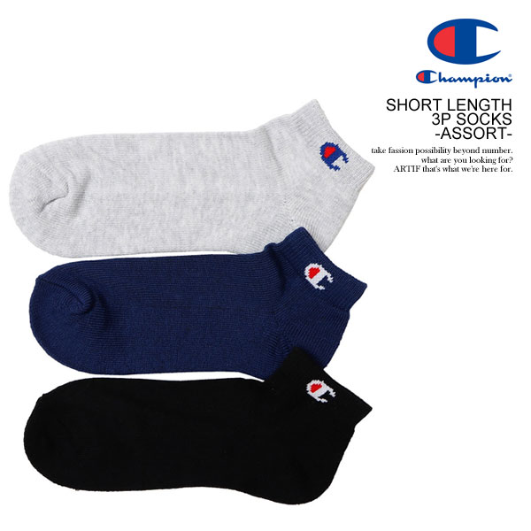 CHAMPION チャンピオン SHORT LENGTH 3P SOCKS -ASSORT- メンズ 靴下 ソックス ショートレングスソックス atfacc