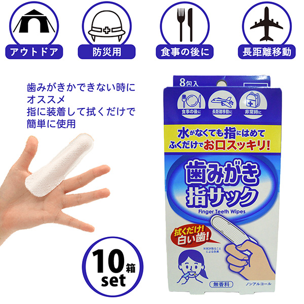 【10箱セット】歯みがき 指サック 8包入 無香料 個包装 ノンアルコール 歯みがきシート 日本製 口腔ケア 歯磨きシート 口腔用ウェットティッシュ ノンアルコール 防災 介護 旅行 アウトドア 本田洋行
