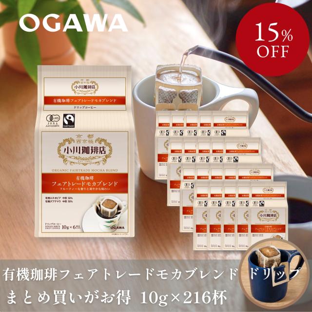 【まとめ買いでお得!】小川珈琲 有機珈琲 フェアトレード モカブレンド ドリップコーヒー6杯分 ×36個| SDGs エシカル 有機栽培 オーガニック 有機JAS認証 フェアトレード 簡易抽出 ドリップバッグ プレゼント | 公式 京都 小川珈琲 送料無料