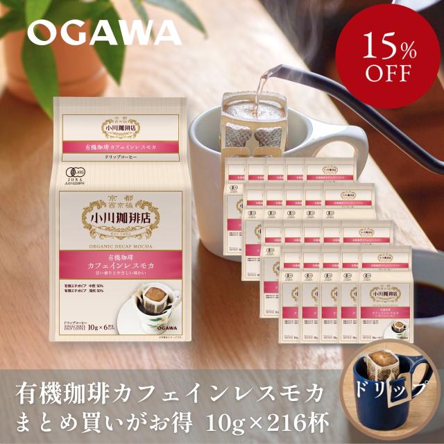 【まとめ買いでお得!】小川珈琲 有機珈琲 カフェインレス モカ ドリップコーヒー6杯分 ×36個 | SDGs エシカル 有機栽培 オーガニック 有機JAS認証 簡易抽出 ドリップバッグ | 公式 京都 小川珈琲 送料無料