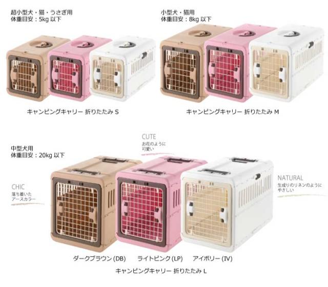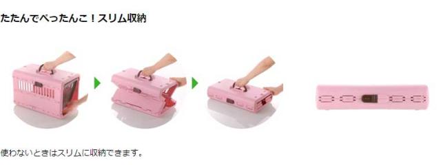 たたんでぺったんこ! 使わないときは、スリムに収納できます。 2014グッドデザイン賞受賞しました!Sサイズ/超小型犬・猫用 体重目安:5kg以下使わない時は、スリムに収納できます。普段からハウスとして慣れておくことで おでかけや災害時もスムーズに移動できます。引っかけ部にかけるだけで、簡単に取り付けられます。車の座席を選ばず設置できます。簡単に取り外せるのでハウスに最適です。外した扉は背面に収納!超小型犬・猫用 体重目安:5kg以下小型犬・猫用 体重目安:8kg以下中型犬用 体重目安:20kg以下 ハンドル2カ所付きキャンピングキャリー 折りたたみ Sブラウン(BR)サイズ/30 x 48.5 x 31H(cm) 折りたたみ時:30 x 47 x 11H(cm) 製品重量/2.2kg材質/本体・ハンドル・他:ポリプロピレン、扉枠・後板・本体ロック・扉ロック:ABS樹脂、扉・扉軸:スチール、他キャンピングキャリー 折りたたみ Sピンク(P)サイズ/30 x 48.5 x 31H(cm) 折りたたみ時:30 x 47 x 11H(cm) 製品重量/2.2kg材質/本体・ハンドル・他:ポリプロピレン、扉枠・後板・本体ロック・扉ロック:ABS樹脂、扉・扉軸:スチール、他