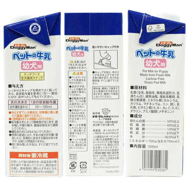 ・オーストラリア産の生乳から作った、生乳そのままの風味が生きている幼犬用の牛乳です。