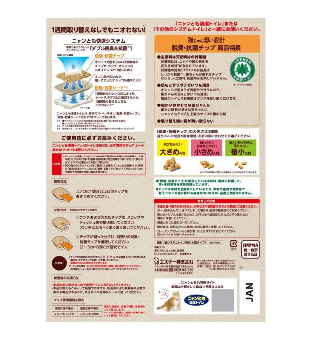 猫ちゃんが触れるチップだから、人工香料、抗菌剤は使用していません。