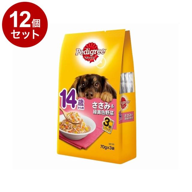 【12個セット】 ペディグリー 14歳から用 ささみ&緑黄色野菜 70g×3袋【送料無料】