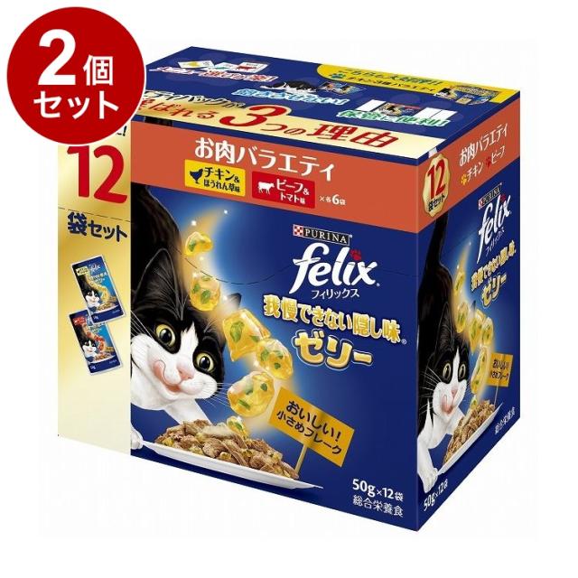 【2個セット】 ネスレ フィリックスパウチ 我慢できない隠し味ゼリー お肉バラエティ 50g×12袋