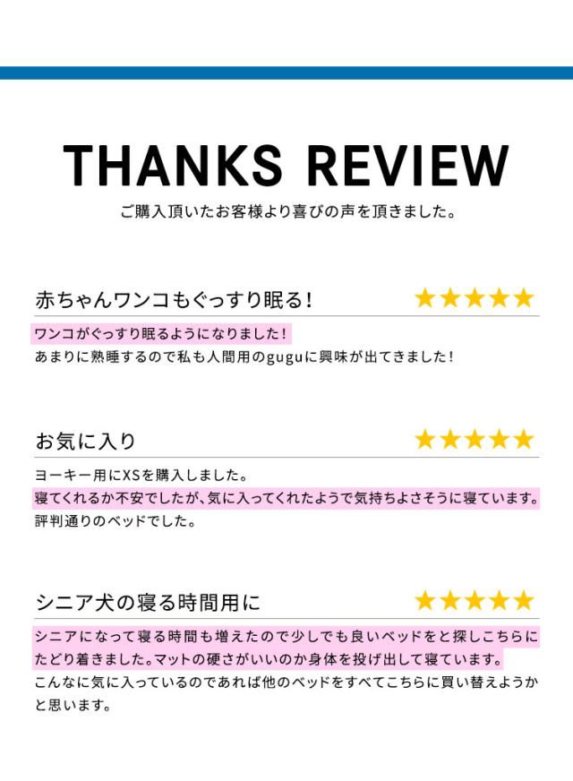 快適な睡眠が毎日の健康につながるのは、人も犬も同じです。guguドギーは、guguマットレスに使われている人間工学に基づき、犬の寝心地を考えてチューニングされています。人間と違って寝返りを打たない犬の体にフィットするように沈み込む低反発フォームと、体をしっかり支える高反発フォームの2層構造が、ワンちゃんの足腰と関節にもやさしくアプローチ。就寝時のストレスを軽減し、子犬からシニア犬まで、健康的で心地よい眠りをサポートします。