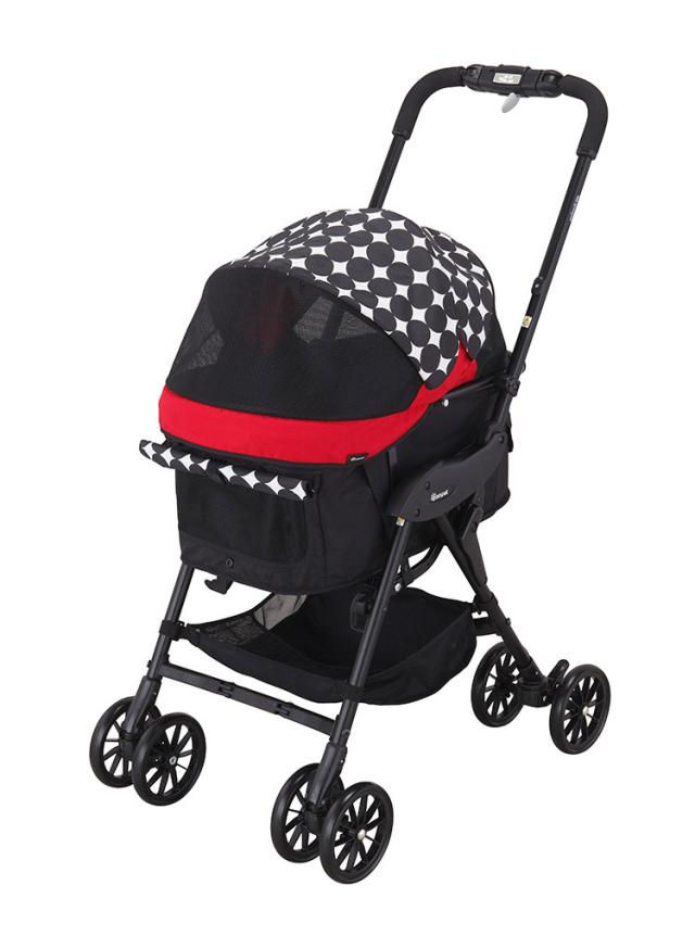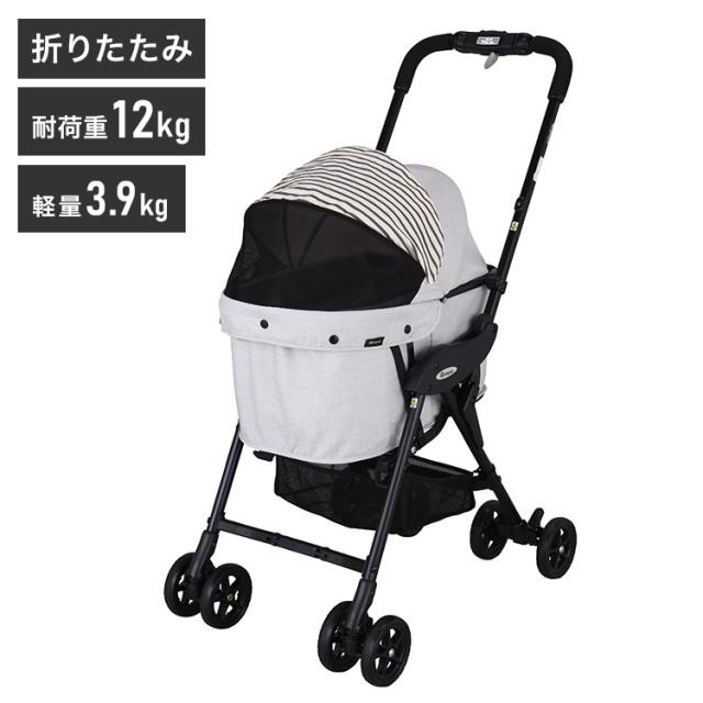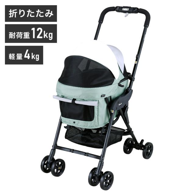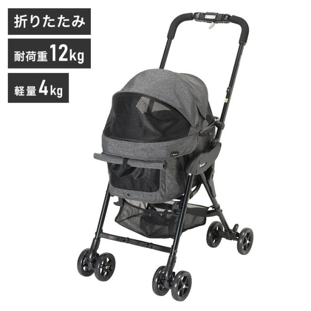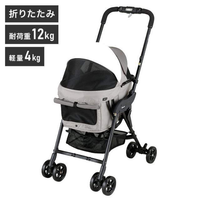 タイヤ交換が自分ででき、軽量・キャリー一体型のロングタイプのペットカートです。ミリミリライトに比べてキャリーの奥行が5cm長く胴長ワンちゃんや2頭乗せにも適しています。超・衝撃吸収素材『エッグショック』が路面からの振動をカットします。耐荷重は12kg、リードフック2本付属。