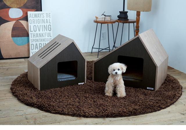 かわいい山小屋風ペットハウス。上部のスリットからワンちゃんがくつろぐ姿がのぞけます。ひとまわり大きなMサイズです。