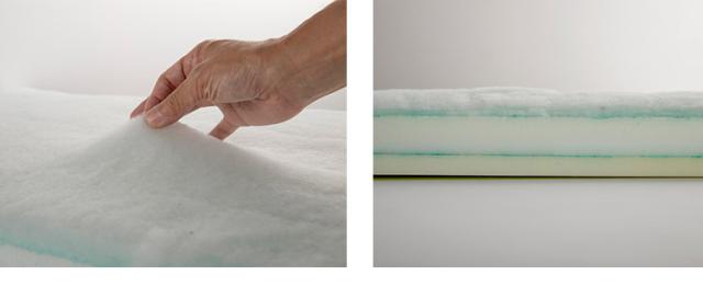 硬さの違うクッション材を組み合わせた、ペット用の本格的なマットレス。