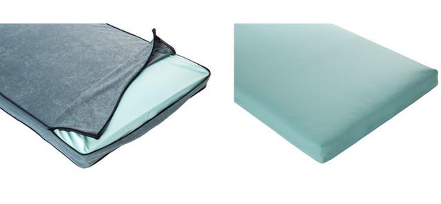 上層クッションは「低反発ウレタン」であたりをやさしく、下層クッションは「高反発ウレタン」でしっかりと立ち上げりやすい仕様です。中身は安心の防水仕様。カバーは洗えます。