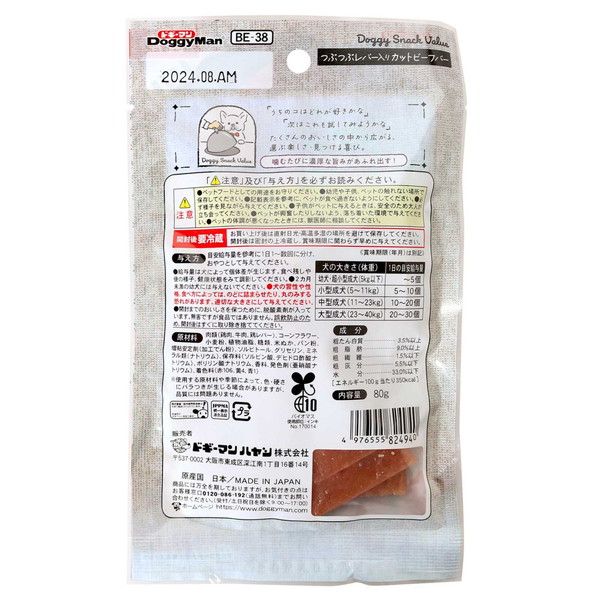 【10個セット】 ドギーマン ドギースナックバリュー つぶつぶレバ—入りカットビーフバー 80g x10