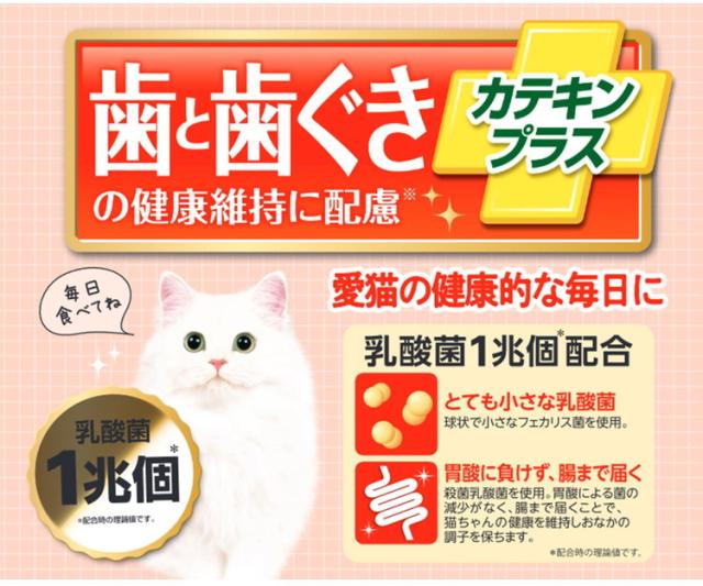 ・乳酸菌1兆個配合で、猫ちゃんの健康を維持し、お腹の調子を保ちます。