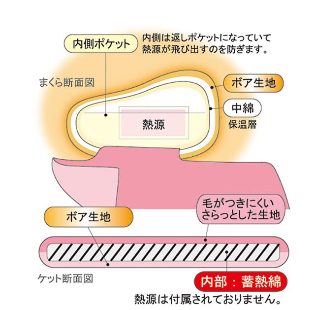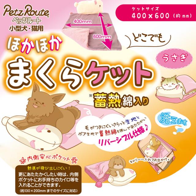 ペッツルート ほかほかまくらケット 蓄熱綿入り タオルケット ブランケット リバーシブル ボア ボア生地 ペット用 犬 いぬ 猫 ねこ 小型犬 クッション あたたか【送料無料】
