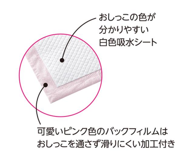 可愛いピンク色のバックフィルムはおしっこを通さず滑りにくい加工付き