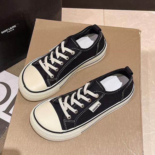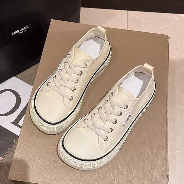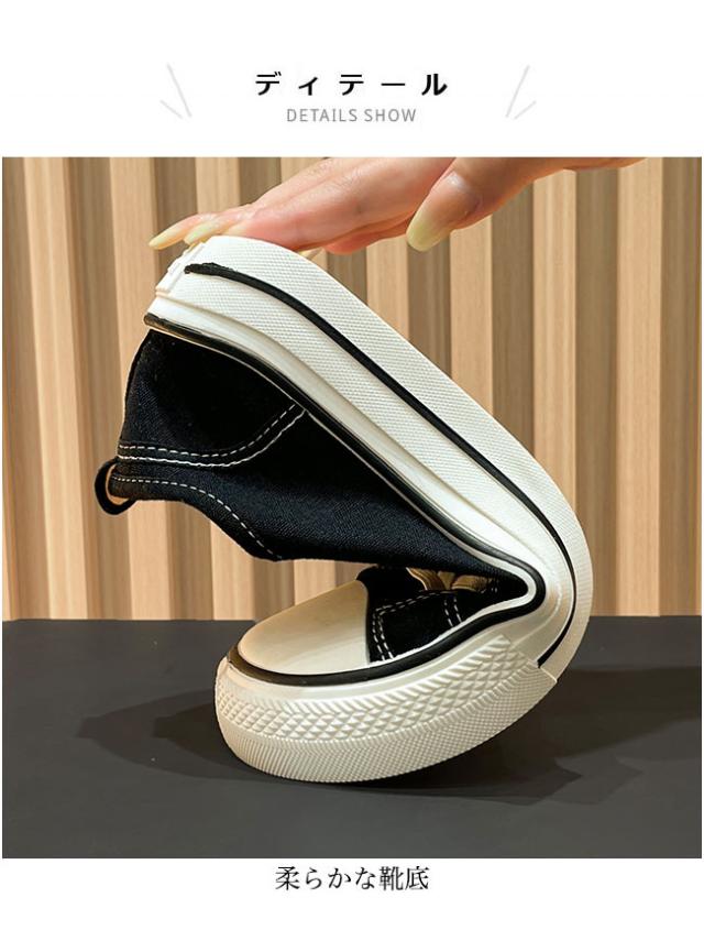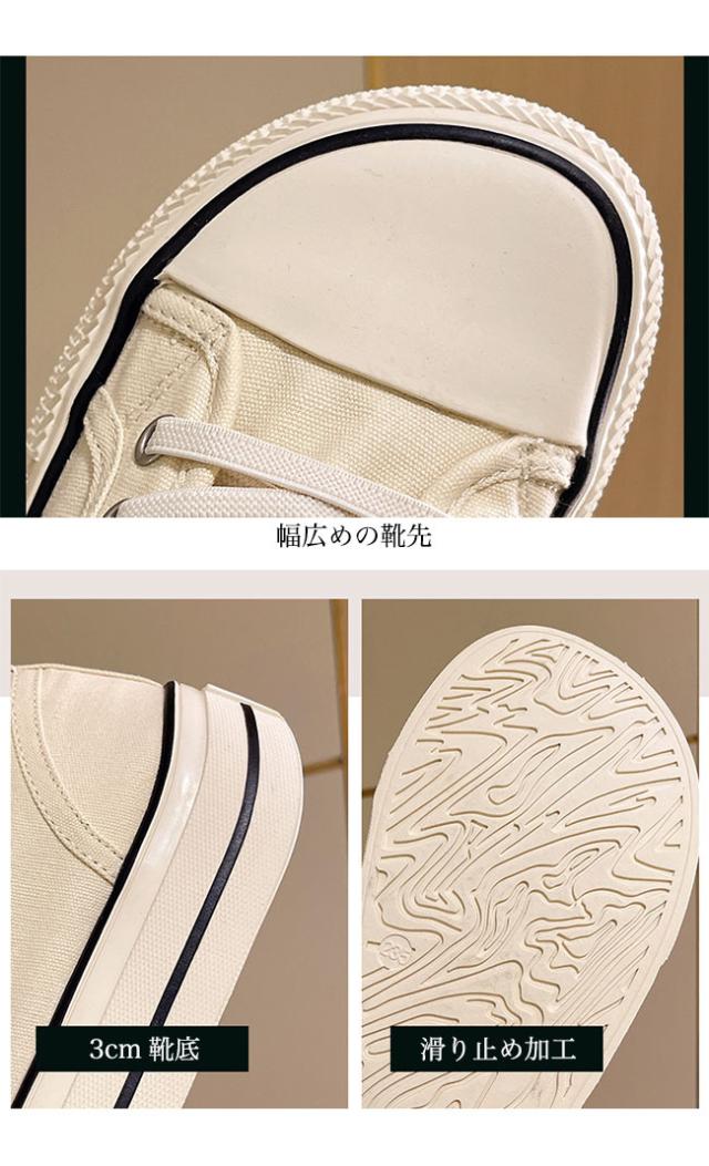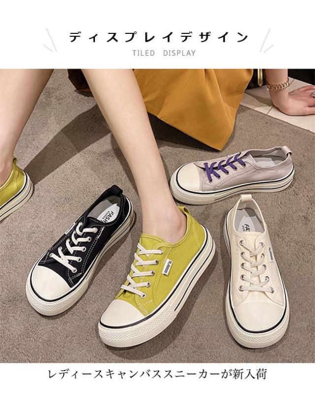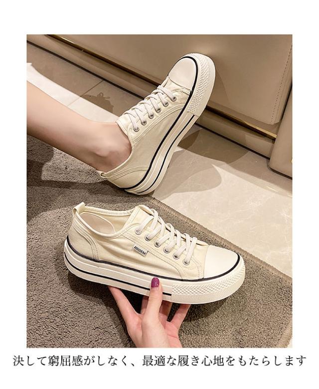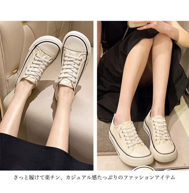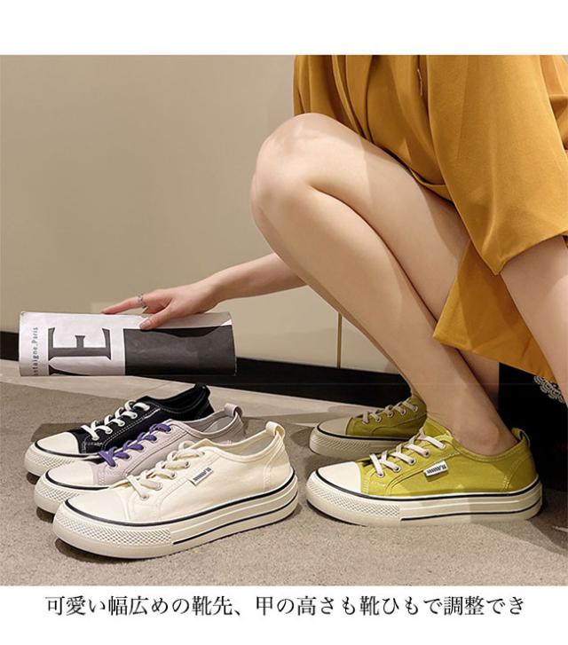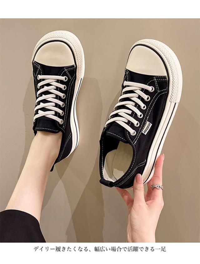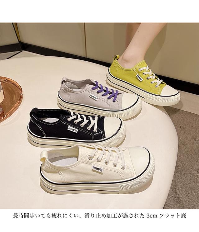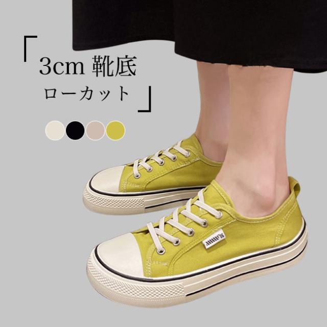 スニーカー レディース ローカット キャンバススニーカー フラットシューズ レースアップ ローカットスニーカー 楽ちん 滑り止め 靴 3cm 厚底 女性