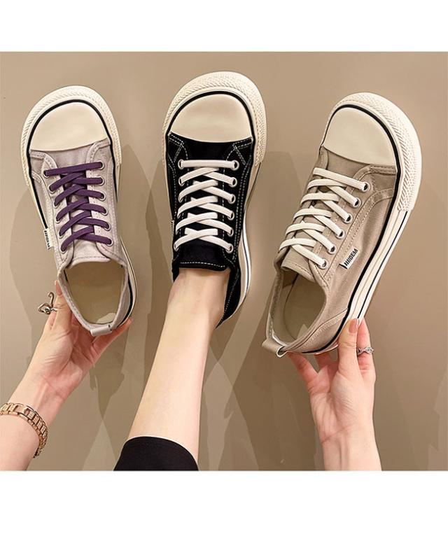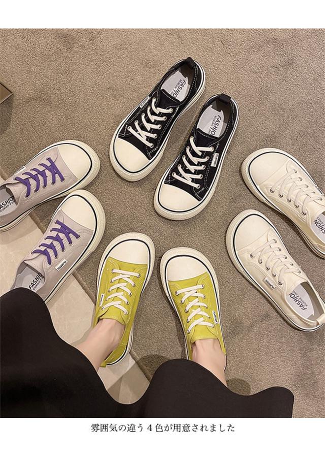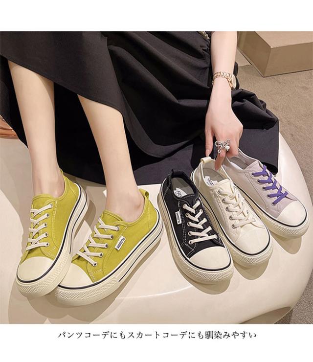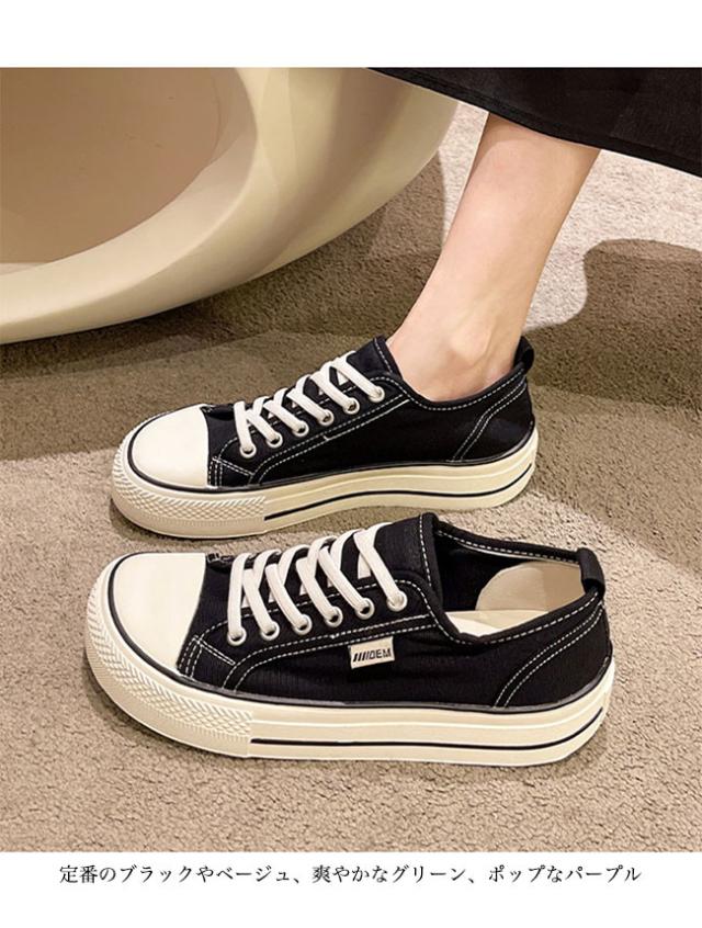 スニーカー レディース ローカット キャンバススニーカー フラットシューズ レースアップ ローカットスニーカー 楽ちん 滑り止め 靴 3cm 厚底 女性 シューズ スポーツ ウォーキング 厚底スニーカー ベージュ ブラック パープル グリーン