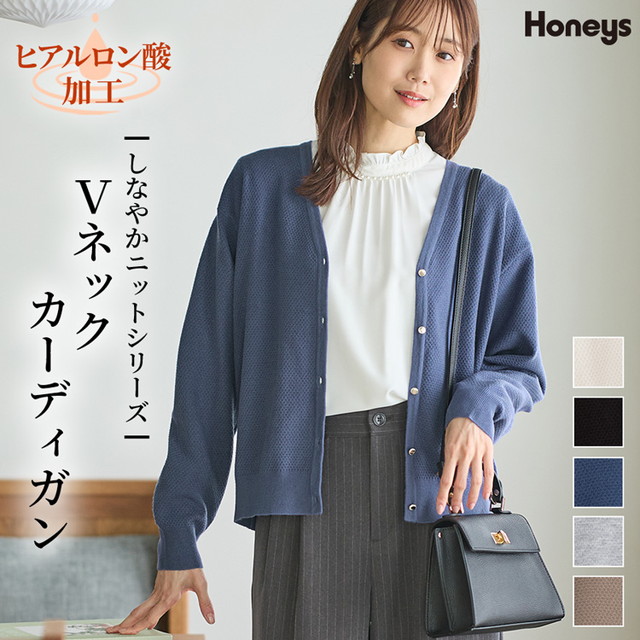 トップス カーディガン 長袖 オフィス きれいめ Vネック ヒアルロン酸加工 レディース SALE セール Honeys ハニーズ ヒアルロン酸Vカーデ