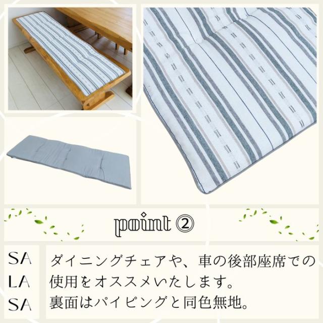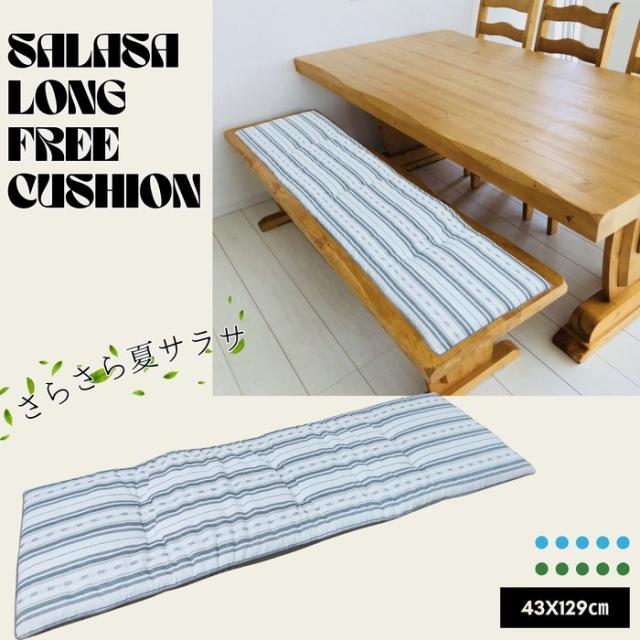 インド綿風フリークッション サラサ グリーン色 ロングサイズ 43x129cm さらさらボーダー柄 ダイニングベンチや車の後部座席用