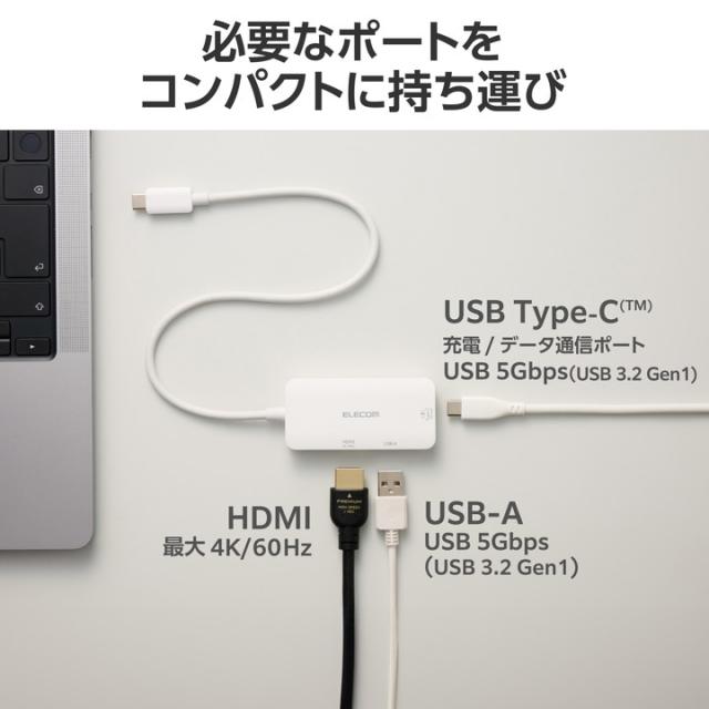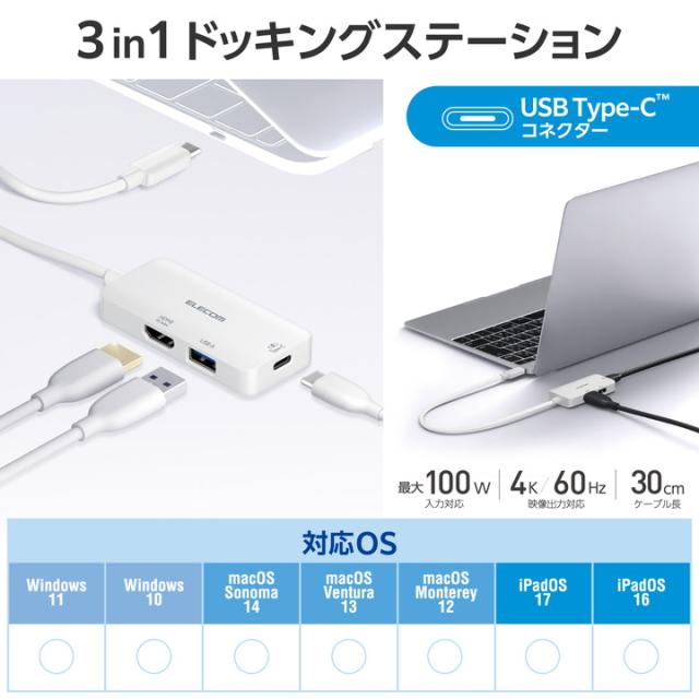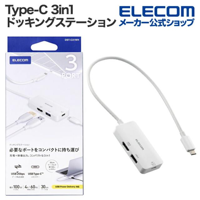 エレコム Type-C ドッキングステーション 3in1 充電 + 映像出力 USB-C×1 USB-A×1 HDMI×1 type-c ホワイト ┃DST-C31WH