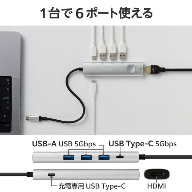 エレコム Type-C ドッキングステーション USB パワーデリバリー対応 USB-A×3 USB-C×2 HDMI(4K60Hz) スイッチ付 シルバー┃DST-S060BPSV