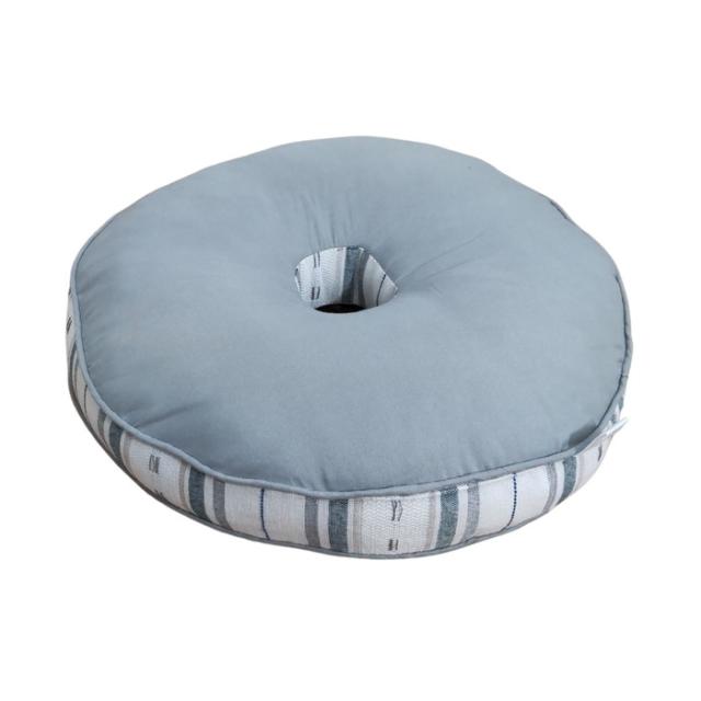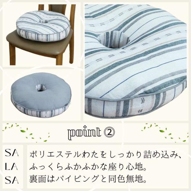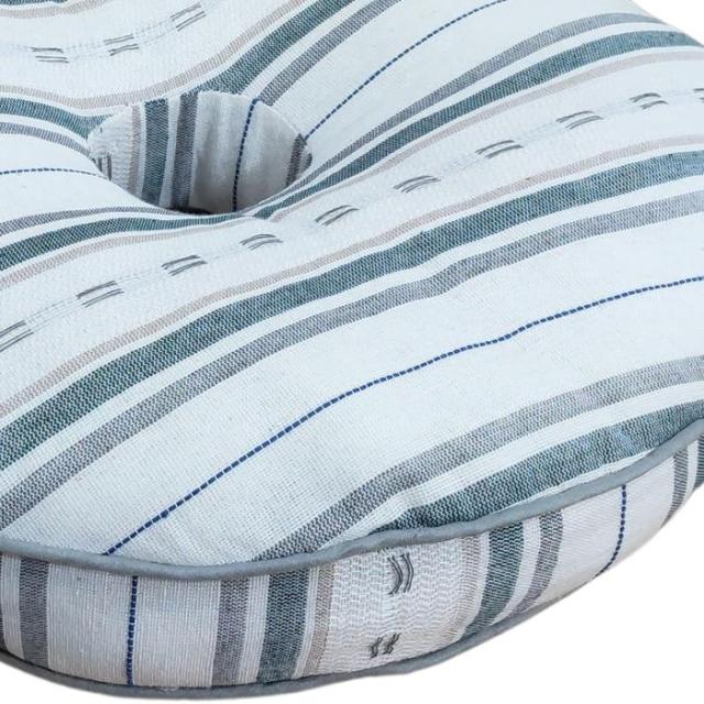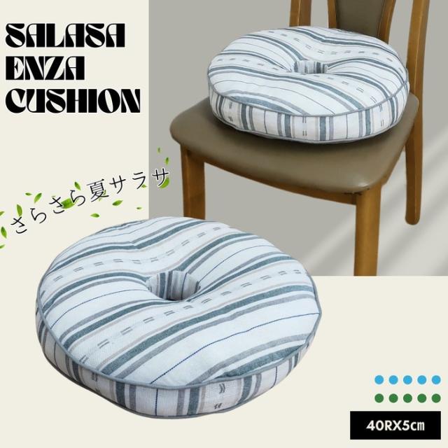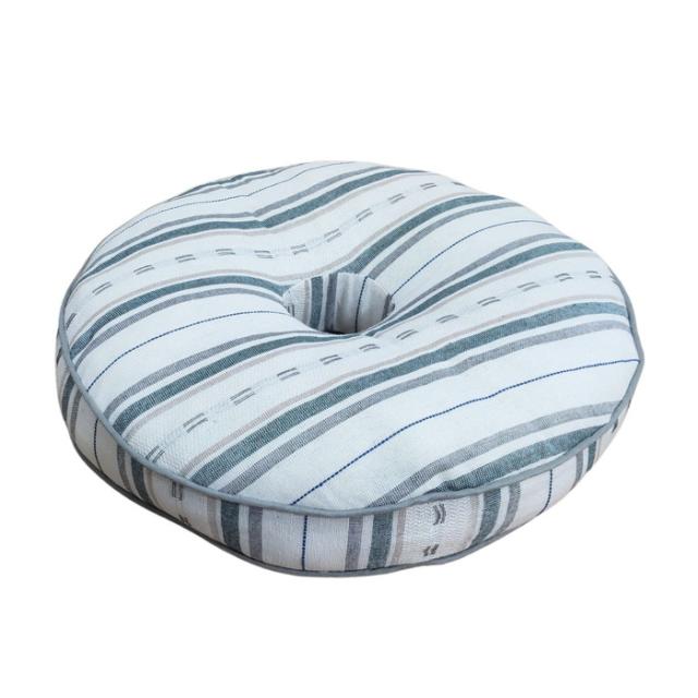 インド綿風生地 マチ付厚手円座クッション サラサ グリーン色 丸型 40Rx5cm さらさらボーダー柄 お尻に優しいドーナツ型