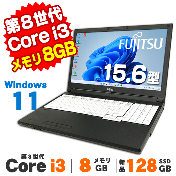 ノートパソコン 中古 Windows11 富士通 LIFEBOOK A748/TX 15.6インチ 第8世代 Core i3 8130U メモリ8GB 新品SSD128GB DVDROM テンキー 無線LAN Windows11 Pro 中古パソコン Office付き