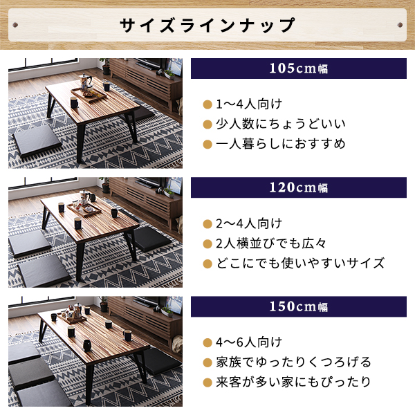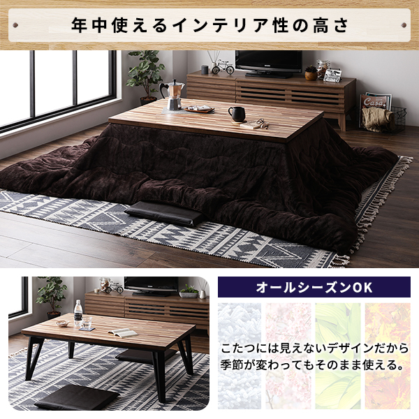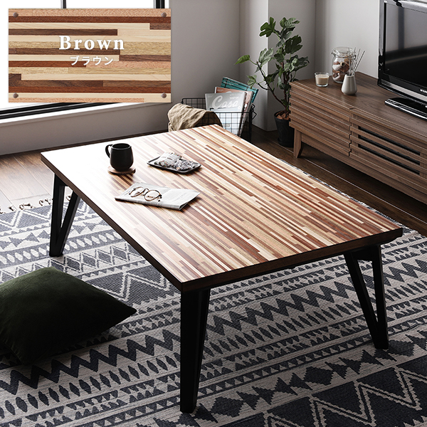 (キーワード: TCC491490 RDA0003617166 4268784 インテリア 寝具 こたつ こたつ用品 こたつ 家電 季節 空調家電 電気 魅力的な木目のモザイク柄ローテーブル 机 低い ロータイプ センターテーブル ウォルナットの風合いがおしゃれな105cm幅のこたつテーブル フラットヒーターで快適な温もりを提供 天然木 木製 の長方形デザ